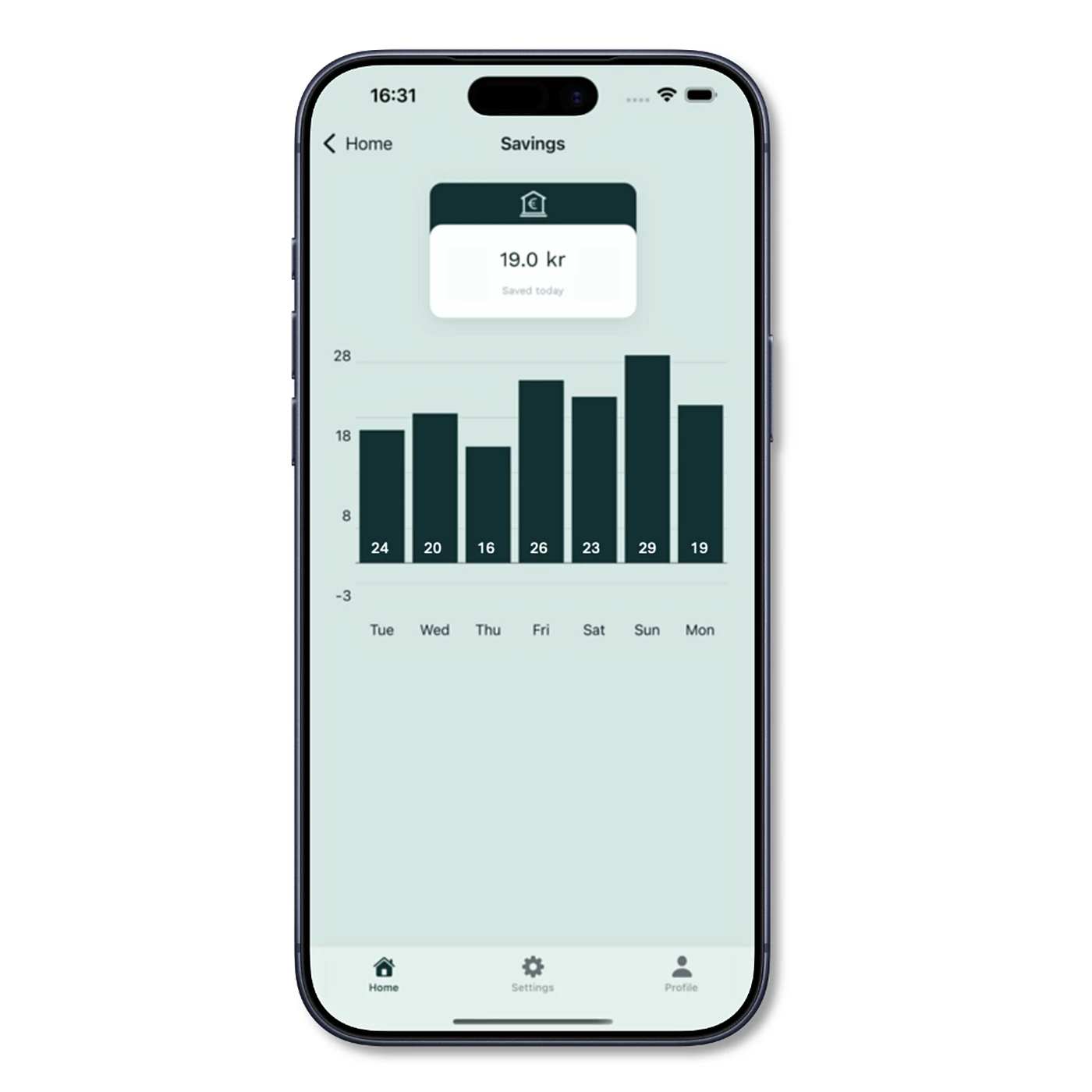 Vakna varje morgon och se gårdagens besparing, direkt i appen