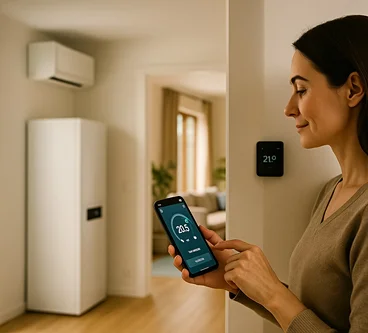 Ett smart styrsystem ser till att värmen används när den verkligen behövs. Genom att anpassa uppvärmningen efter elpris, väder och – för den som har solceller – tillgången på egen el, hålls komforten jämn till lägre kostnad.