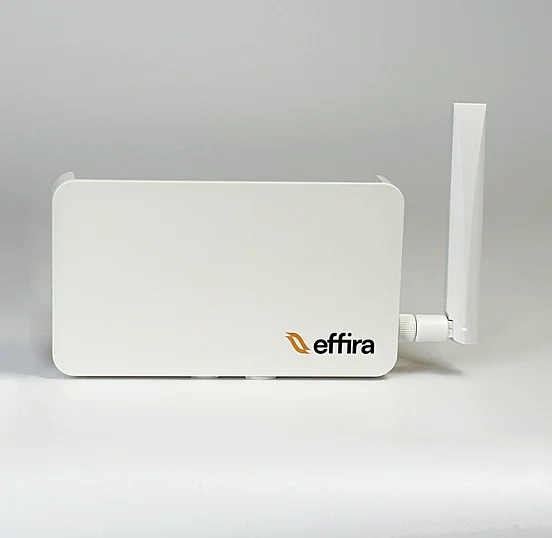 Den centrala styrenheten som kopplas till värmepumpen och Effiras tjänster via mobiluppkoppling. Hub fungerar som systemets hjärna och håller kommunikationen säker och stabil. Ditt hus fungerar som ett värmebatteri, och LED-panelen lyser i olika färger beroende på driftläge – till exempel när värmepumpen laddar huset med värme eller när det laddas ur.